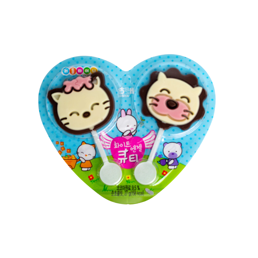 O Pirulito de Chocolate White Angel Cutie 27g é um doce delicado e saboroso, feito com chocolate branco cremoso que derrete suavemente na boca. Com visual encantador e formato divertido, é perfeito para agradar crianças e adultos.